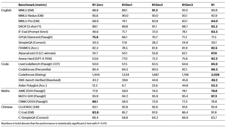 而且,这套方法不仅对数学有效。经过多轮微调,R1 的能力已经扩展到语言理解、常识推理、跨学科问题解决等多个领域。