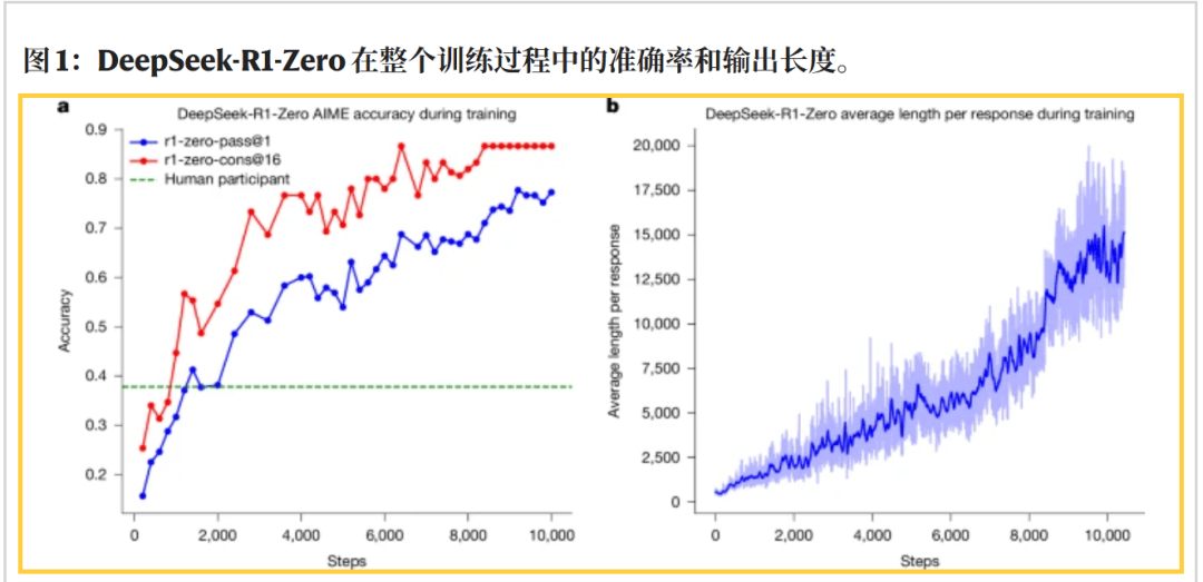 而 R1 能有今天的推理能力,也离不开它的前身 R1-Zero 的打磨。R1-Zero 完全靠纯强化学习自我进化,训练里唯一的规则就是:答对加分,答错扣分,不教套路,也不规定思考步骤。